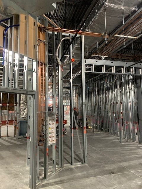 Prefabrication was used extensively on this project and was key to its success. Starting with the below grade plumbing, all of the plumbing risers were Trimble which almost eliminated layout time and ensured that pipe risers were in the right spot.